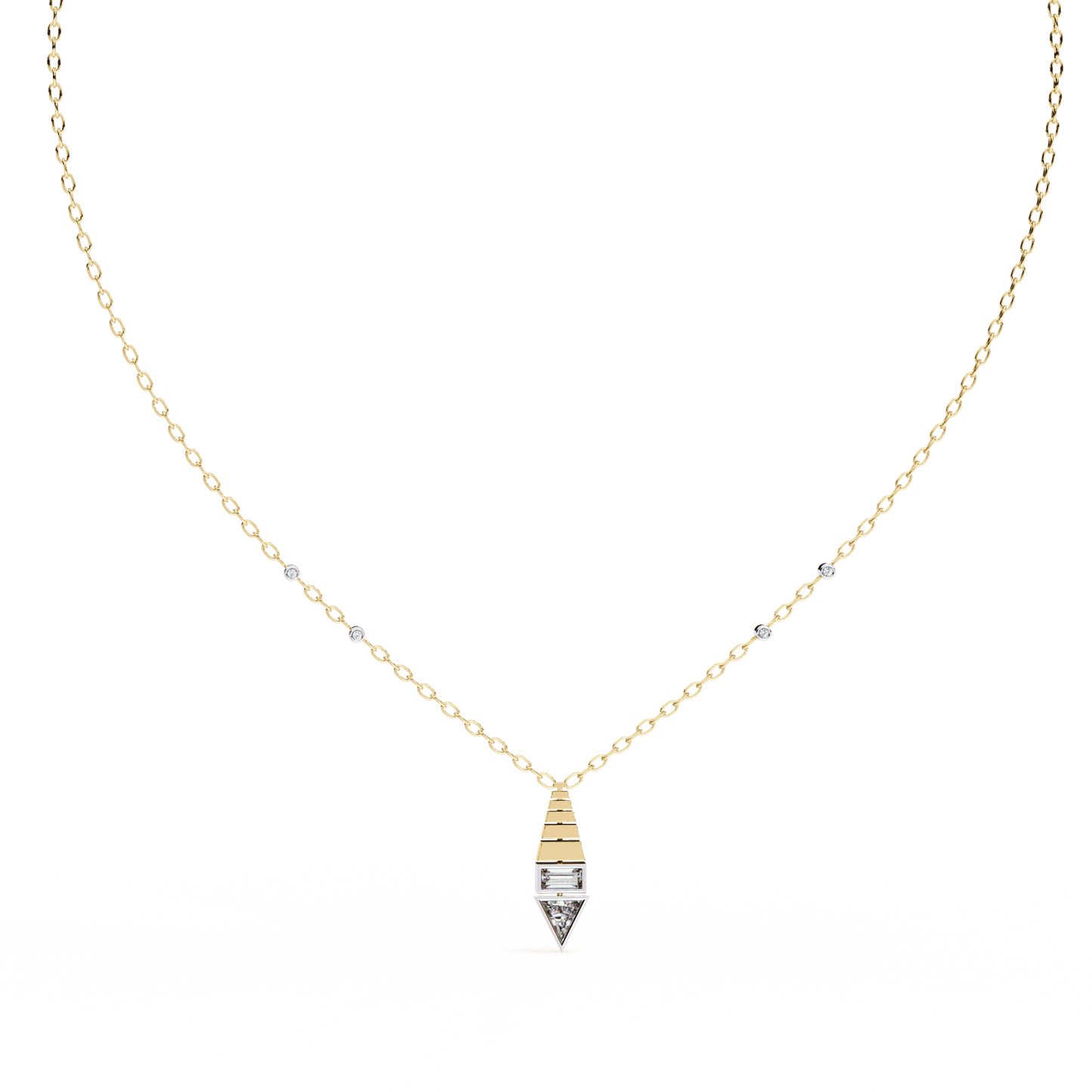 Triangle Shape Baguette and Round Pendant