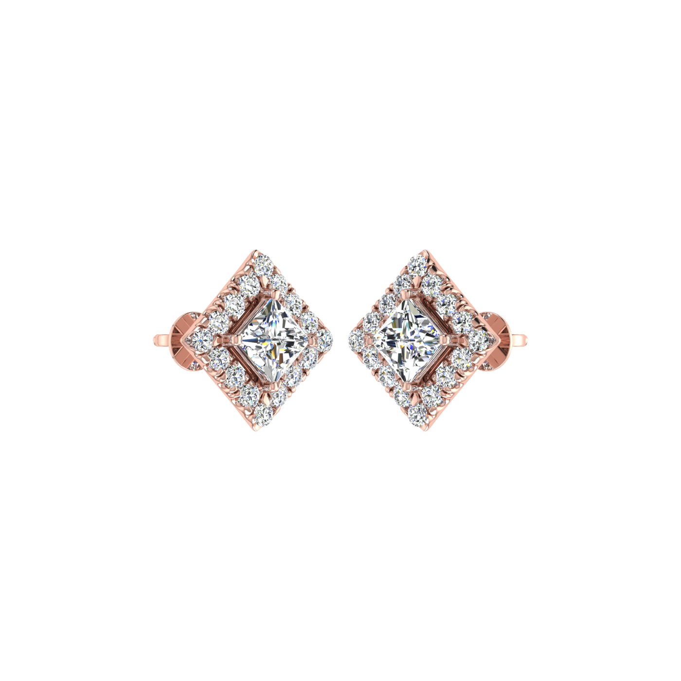 Dashing Princess Cut Solitaire Halo Studs