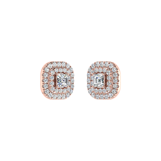 Square Shaped Round Diamond Earrings