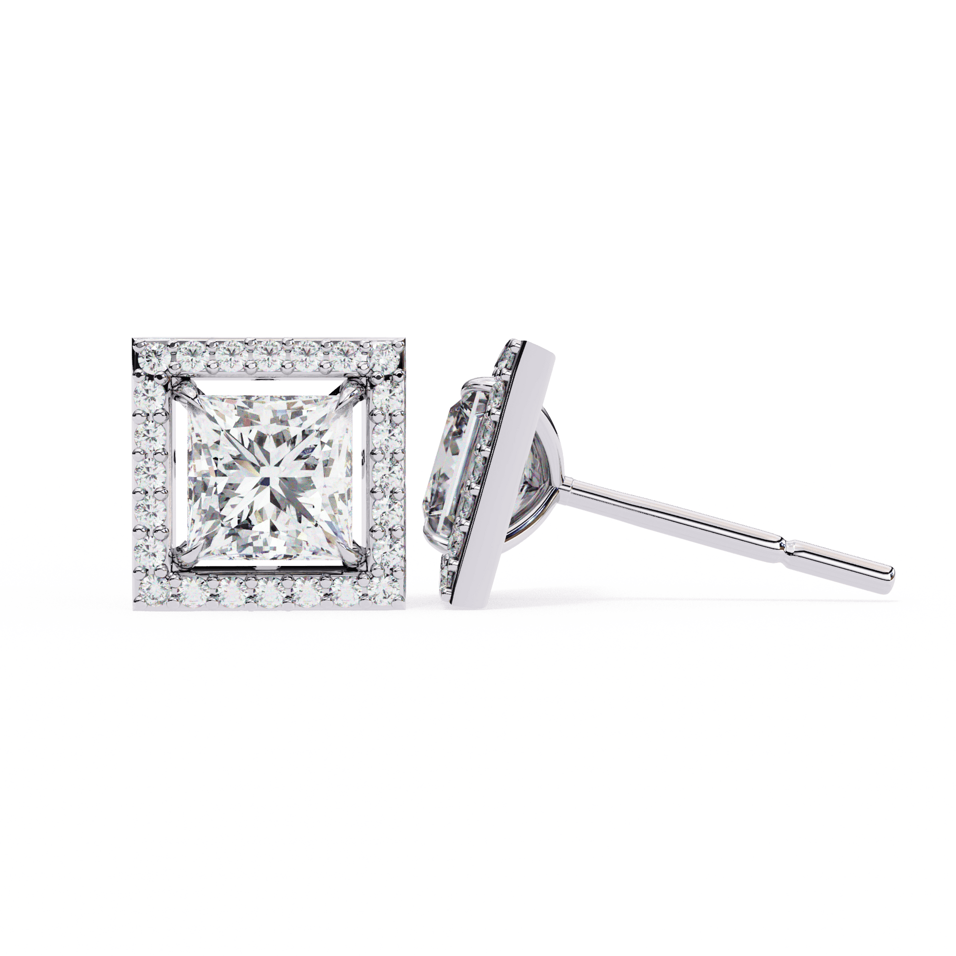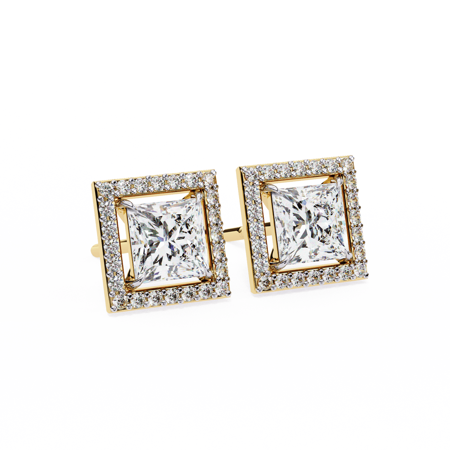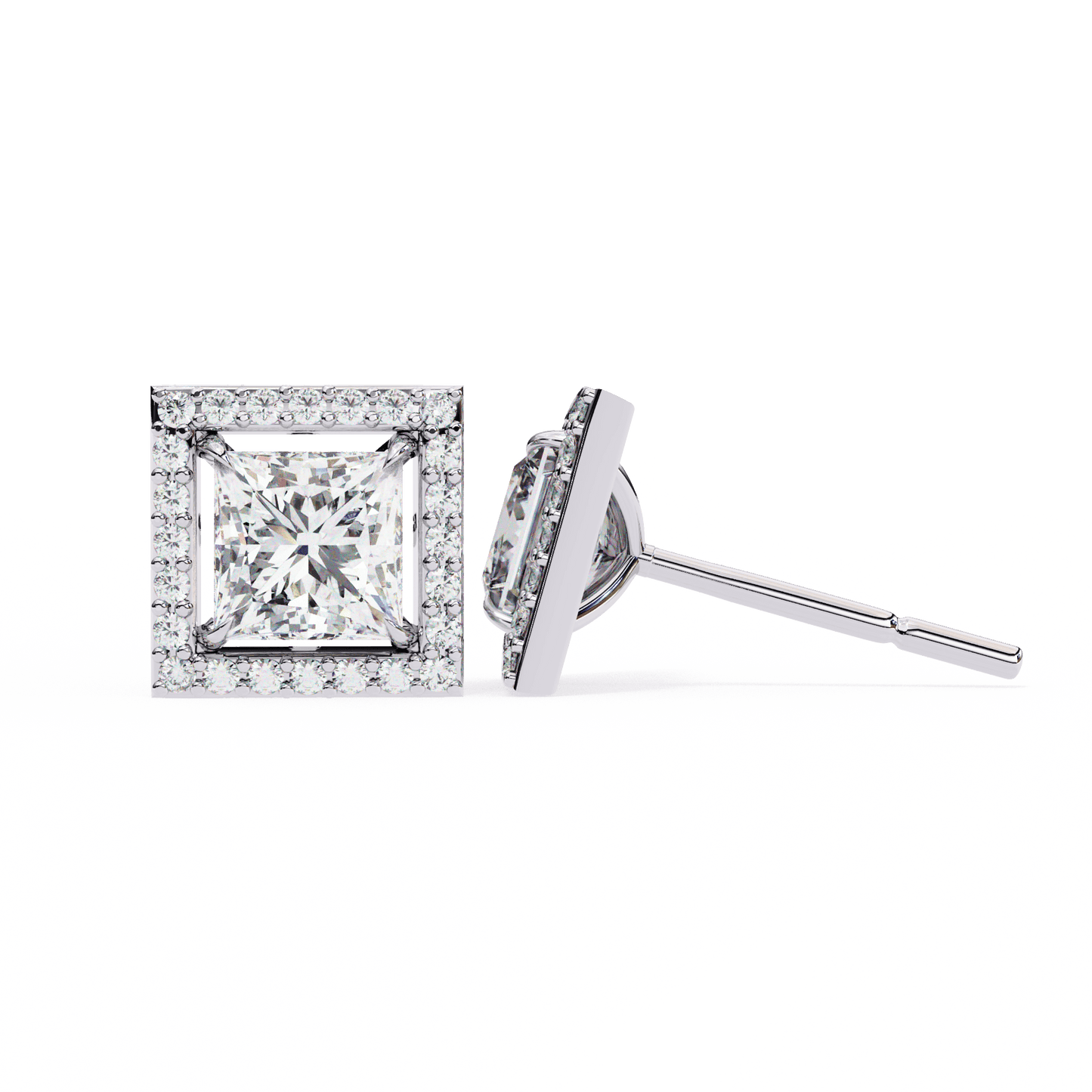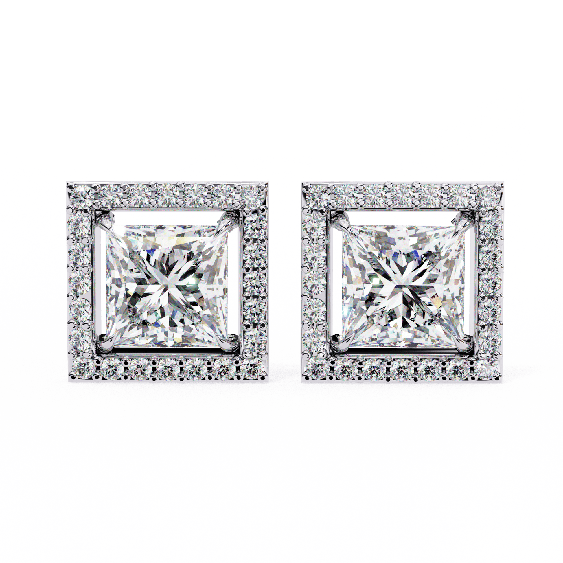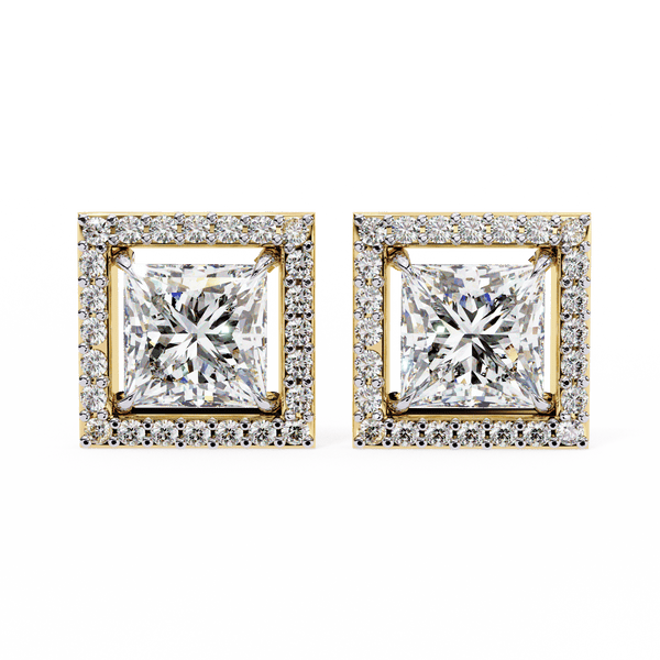 0.72 Carat Center each Princess Cut Solitaire Halo Earrings