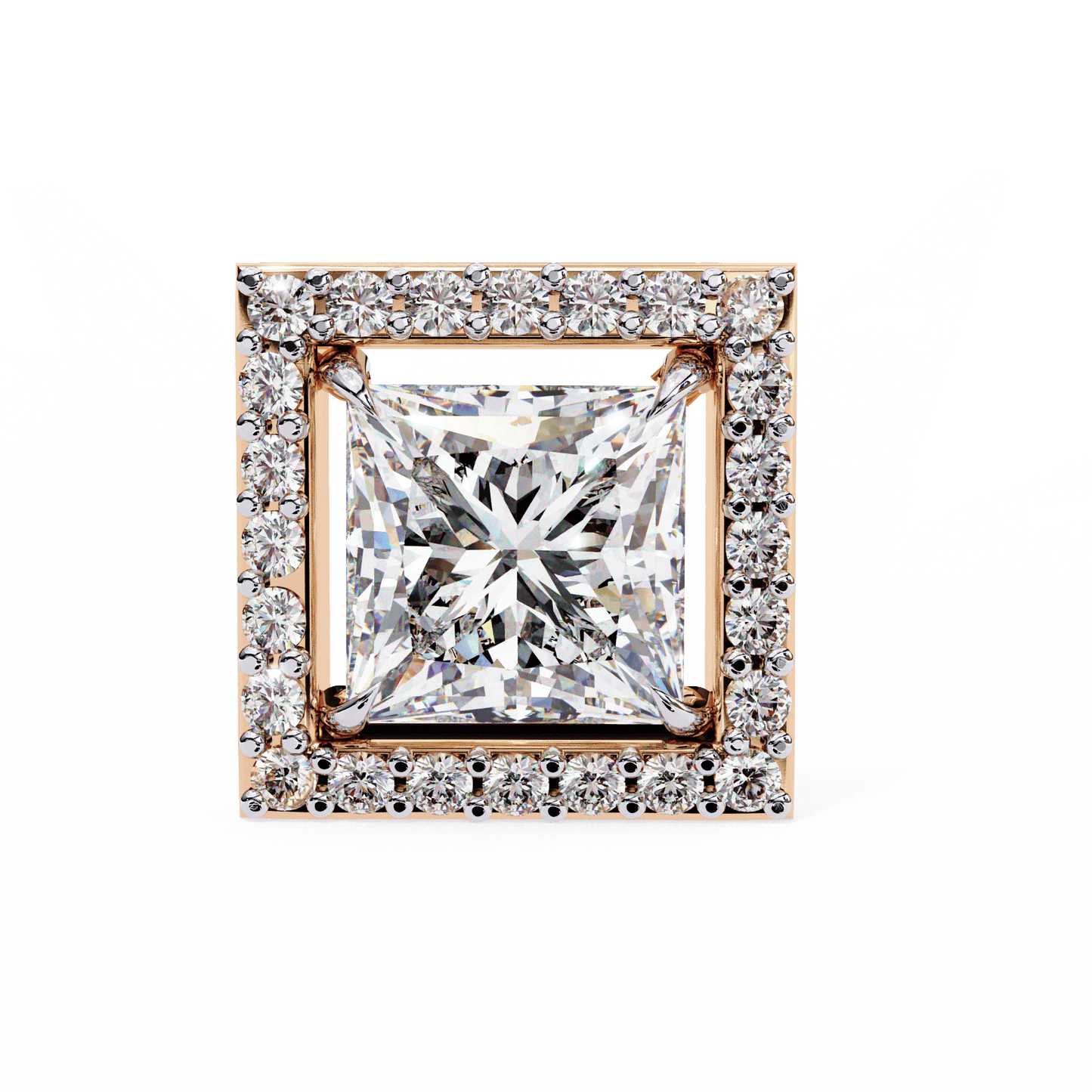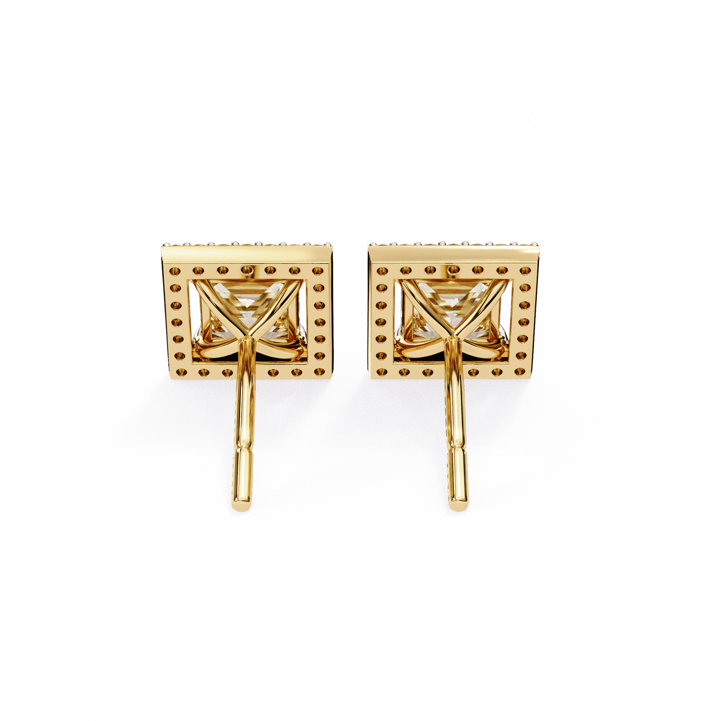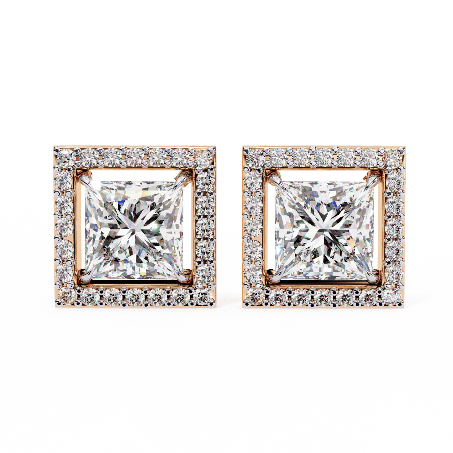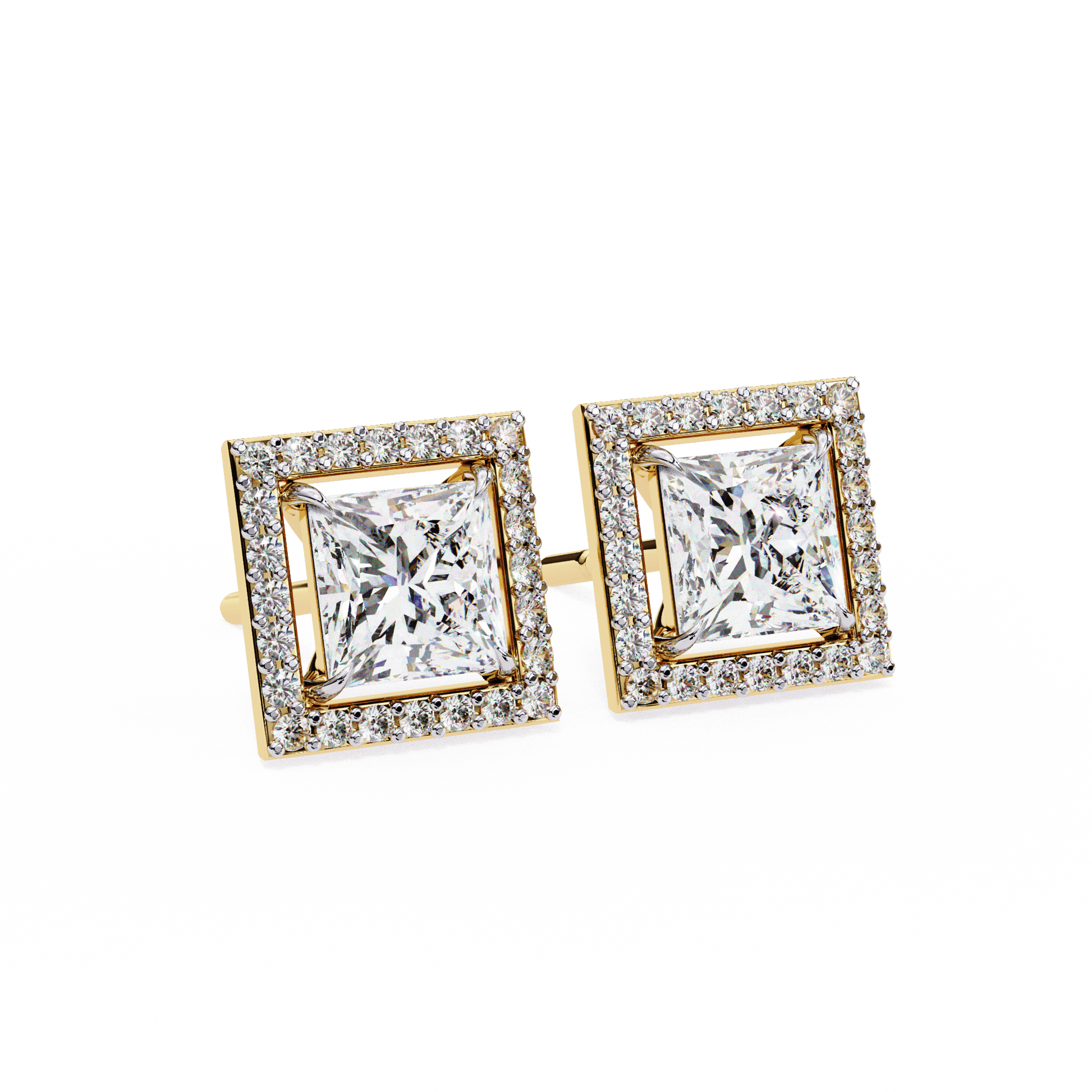 0.72 Carat Center each Princess Cut Solitaire Halo Earrings