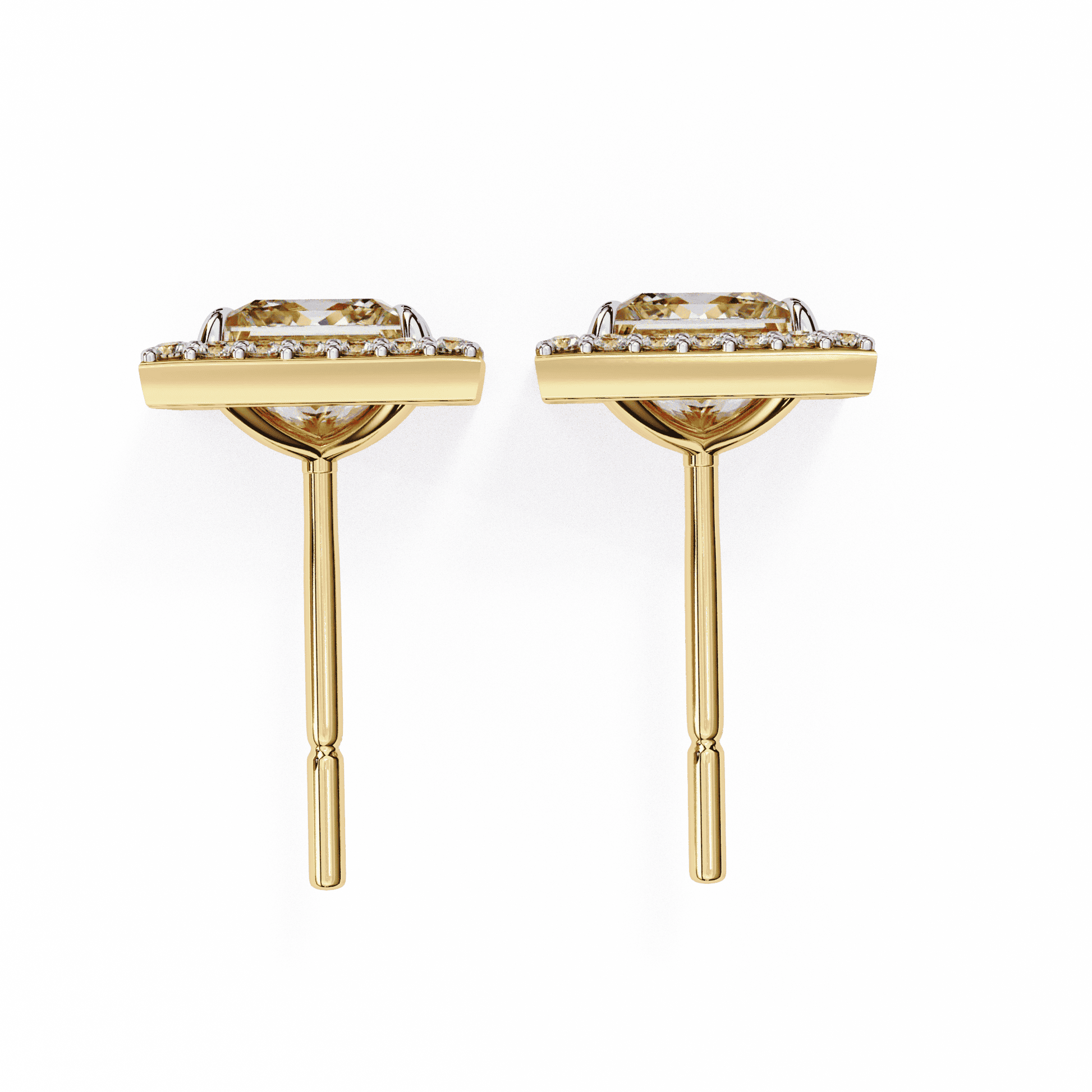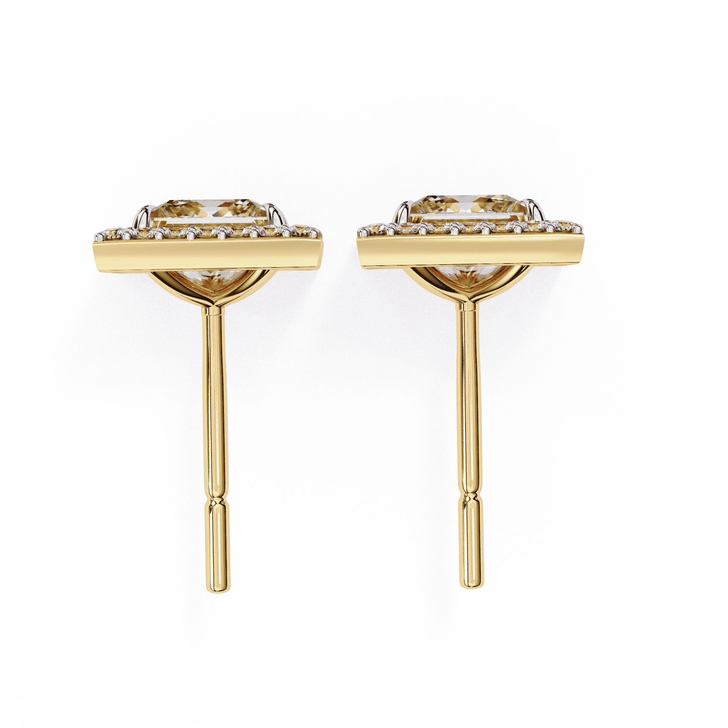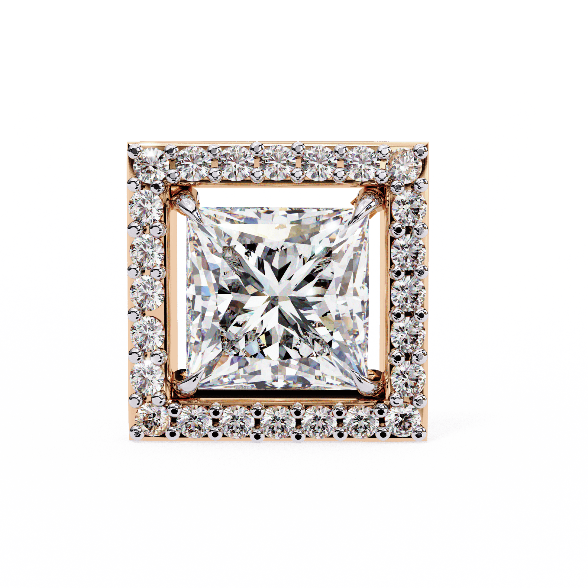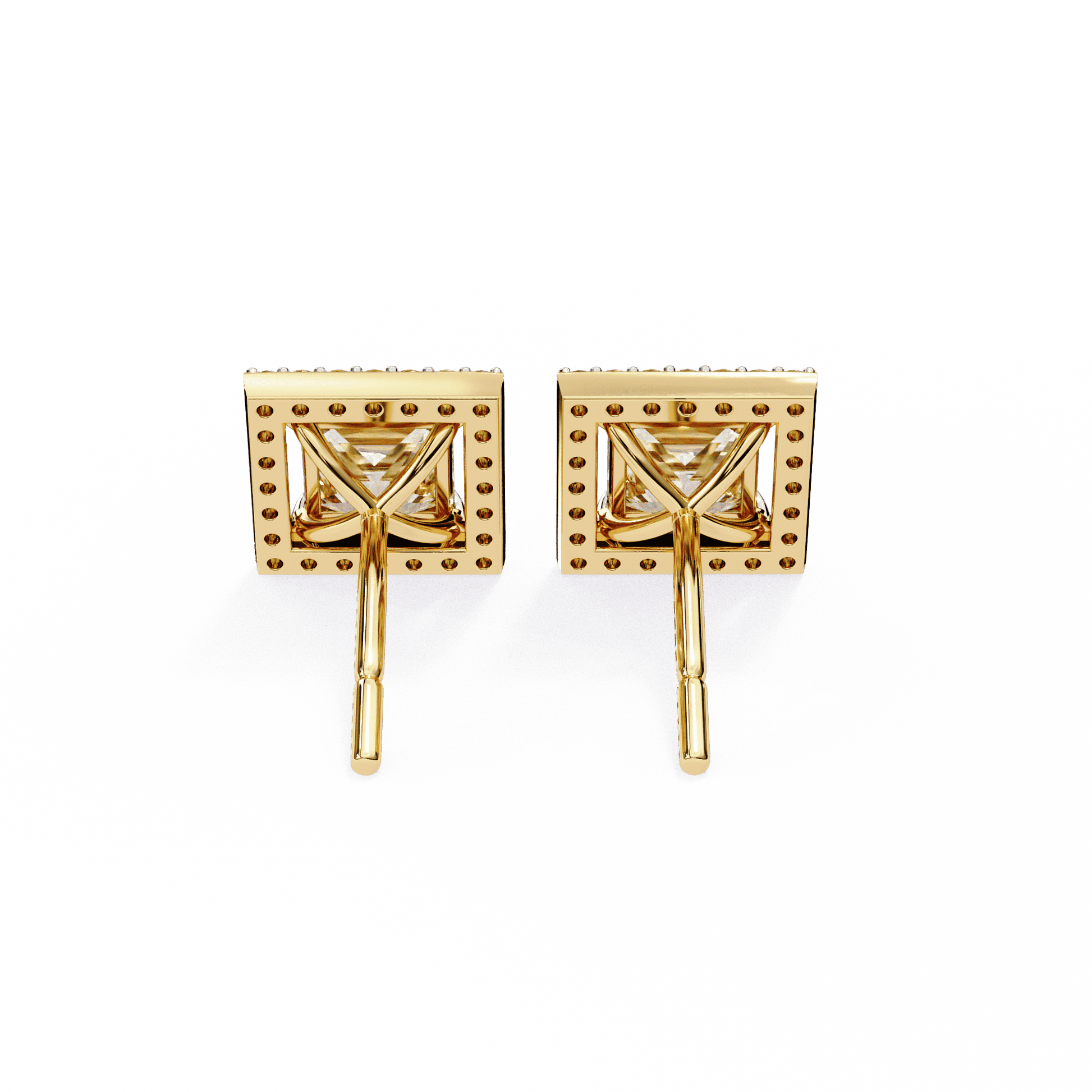 0.72 Carat Center each Princess Cut Solitaire Halo Earrings