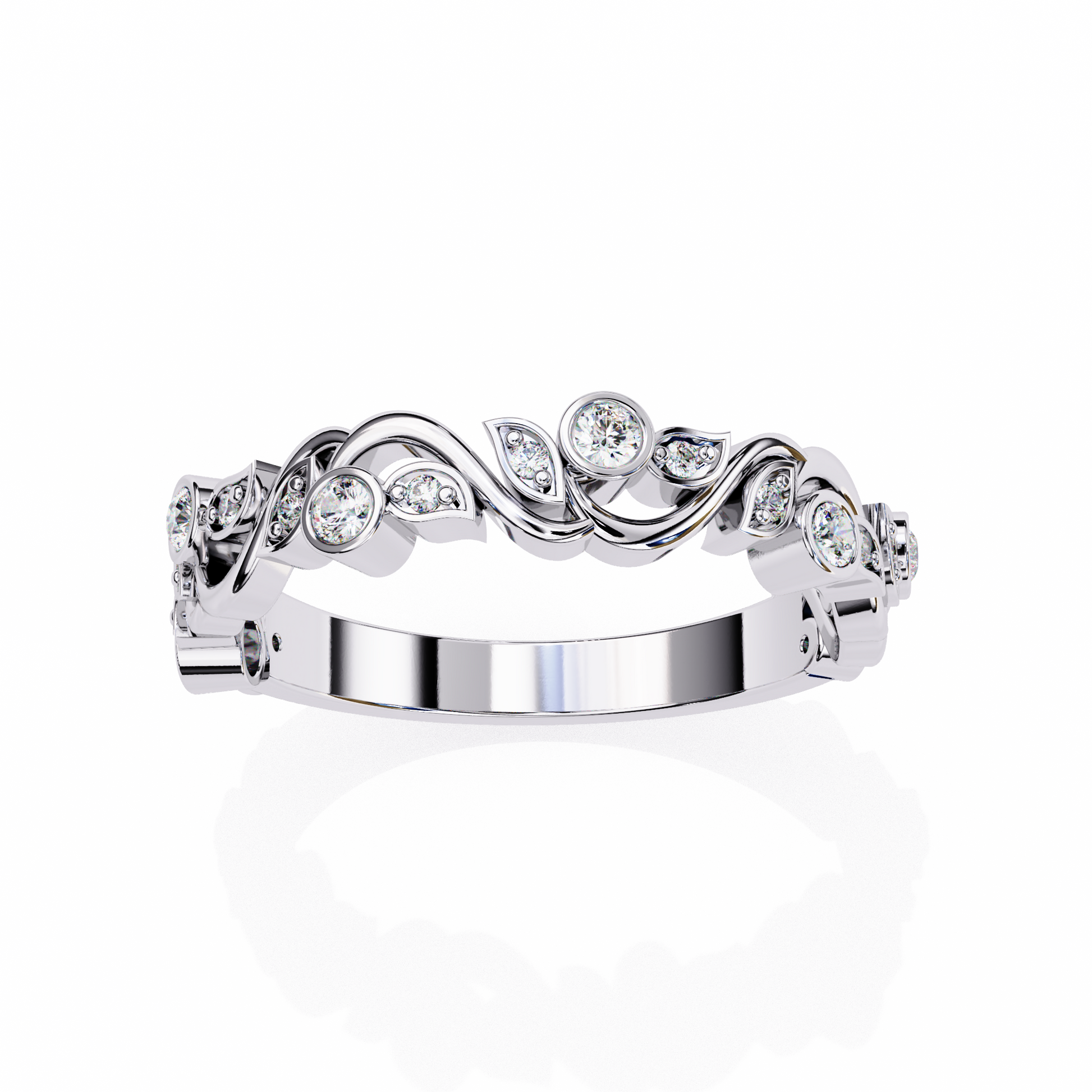 Camelia Crest Diamond Band Ring